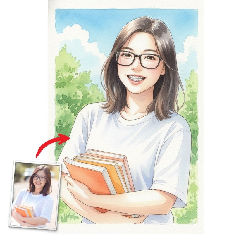 แปลงโฉมภาพถ่ายของคุณให้เป็นภาพวาดอนิเมะสีน้ำโทนพาสเทล ให้บรรยากาศอบอุ่น สดใส เหมือนหลุดเข้าไปอยู่ในมังงะญี่ปุ่น